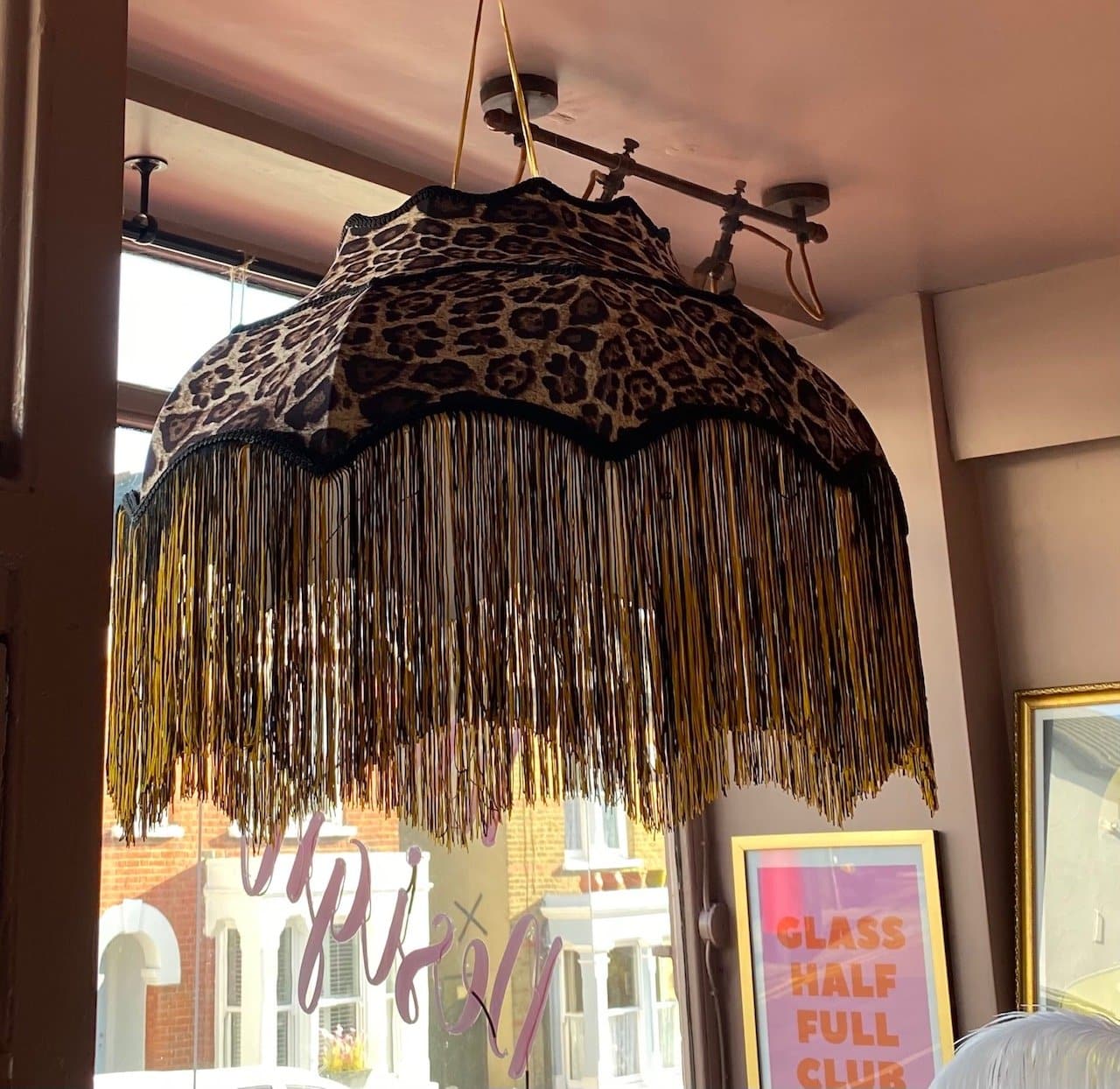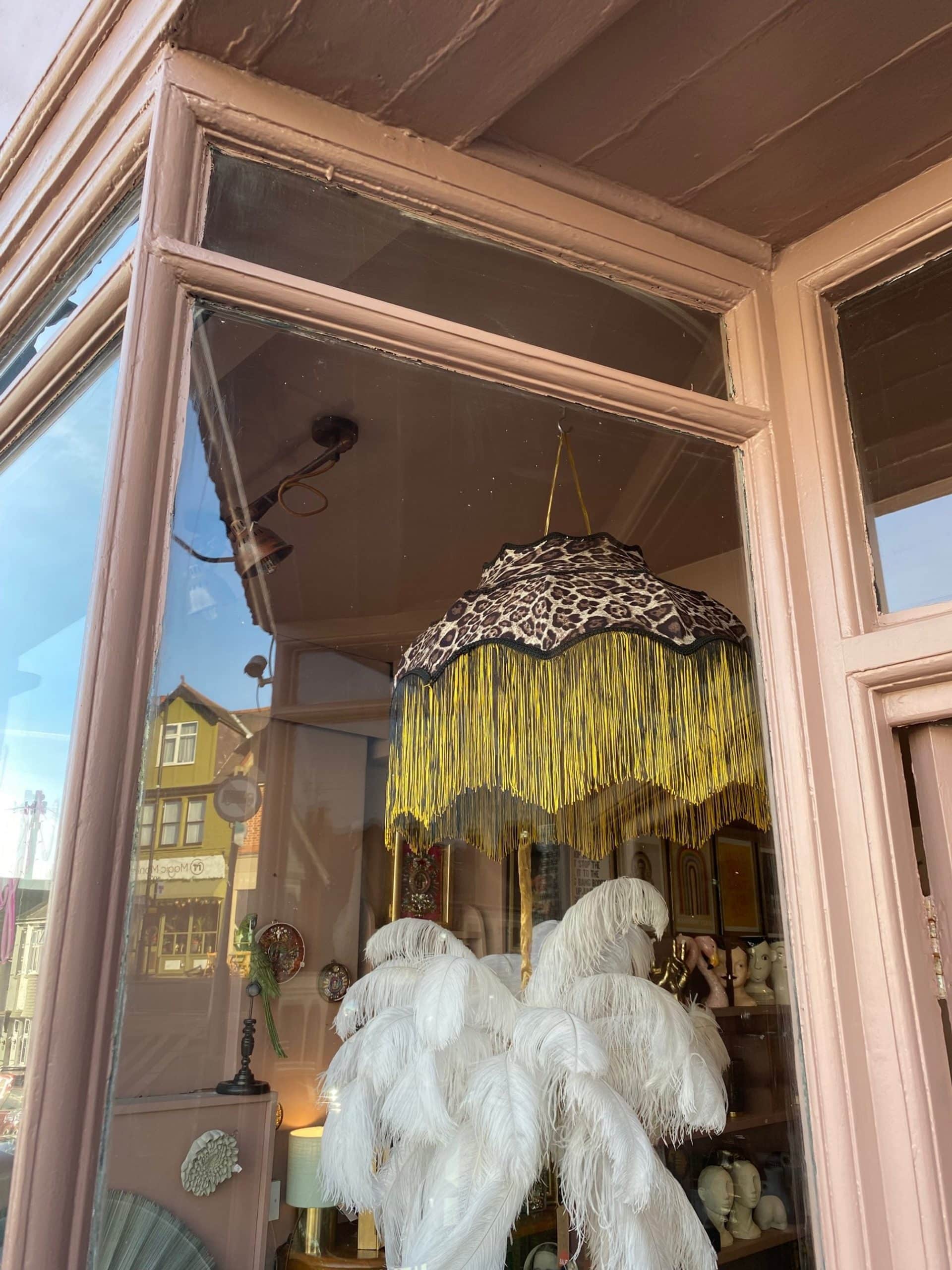 Stunning Animal Print Lampshade with black edging and yellow and black fringing.