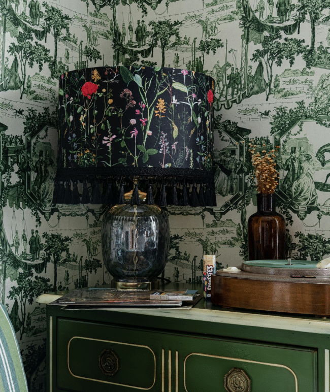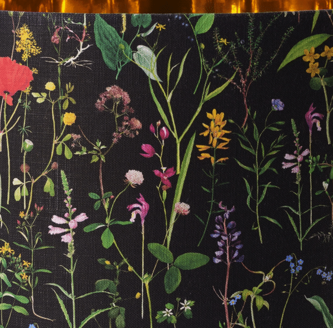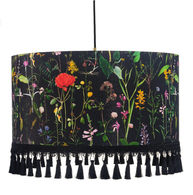 Get inspired by this mesmerizing floral gathering found in the AQUAFLEUR Lampshade design. From poppy flowers to cornflowers and bluebells, the layout is filled with lively colors but delicate shapes of all the thin and elegant wild flowers. Printed on linen, the lampshade is finished with black tassels and metallic gold lining. Coming with golden metallic ceiling rose, E27 lamp holder and black braided fabric cord.