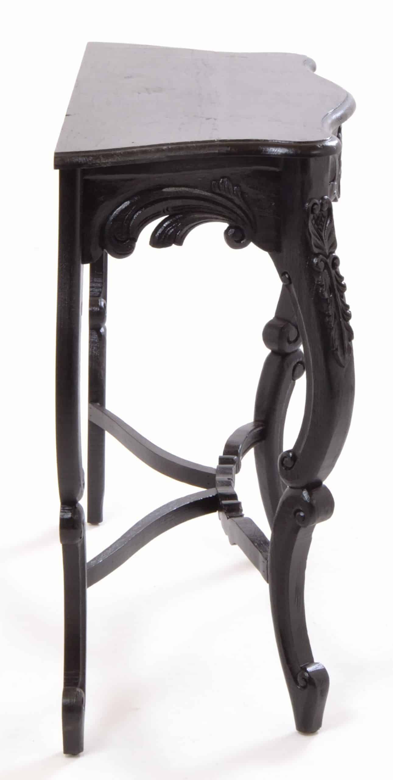 This console has been carved from solid mahogany by craftsmen using traditional methods. The depth from front to back is deliberately narrow, so that it can sit in a hallway or landing and still give you plenty of room to get past. House some flowers on top, or a figurine. And use it to out your keys on and to sort through the post that’s popped through your door.