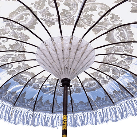 This stunning Balinese parasol in a divine white colour is THE best way to bring splendour and luxury to any garden or terrace. This gorgeous piece is hand carved, woven and and hand painted by a small family business in Bali.