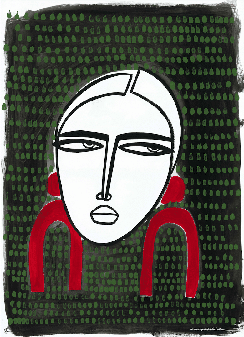 Polish born artist creating bold, striking female portraits using simple brush lines, strokes and block colours.
