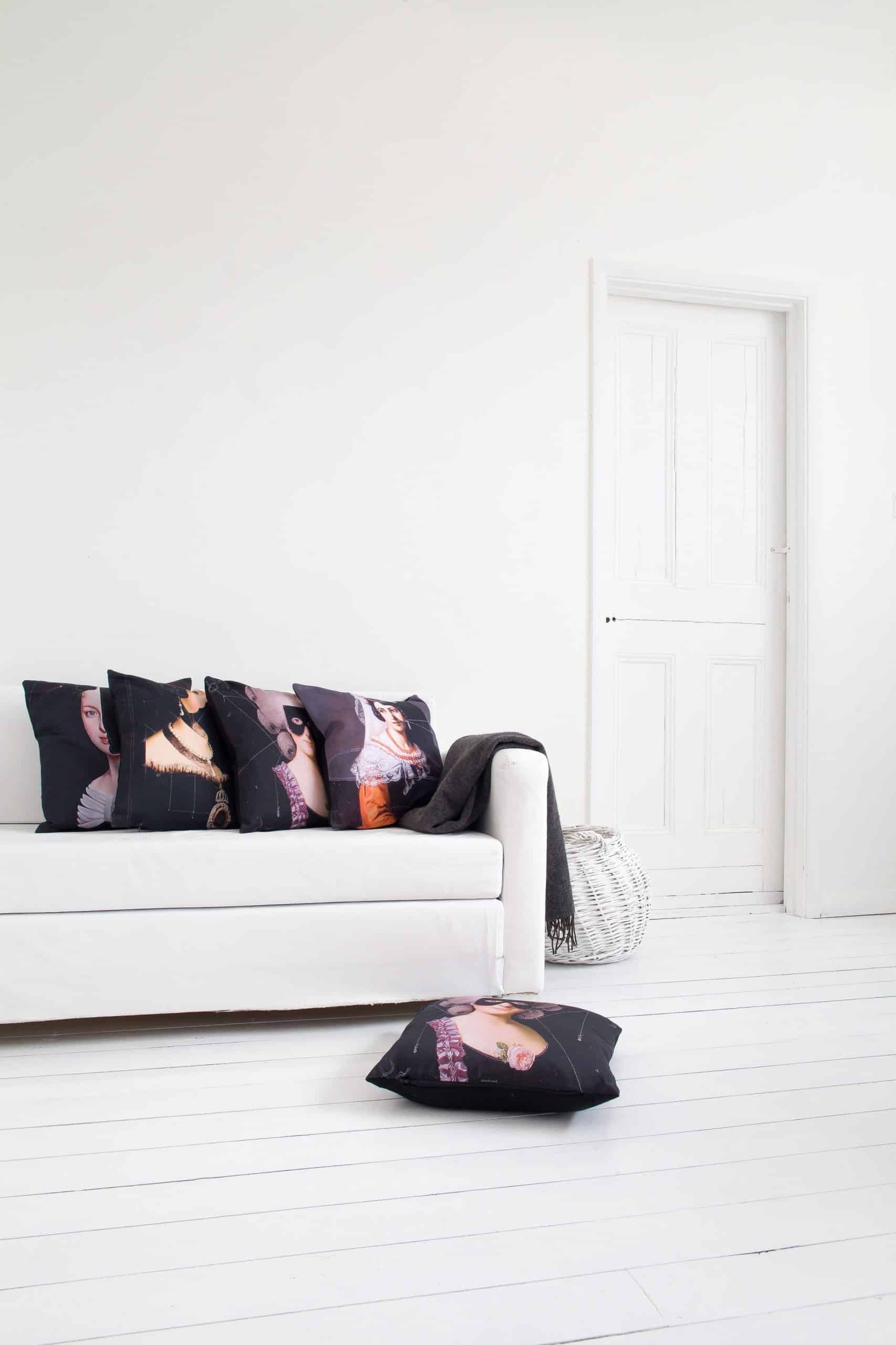 This cushion collection includes Celia, Edith, Isabella and Grace cushions. Please enquire. Designed by Young & Battaglia with artwork by João Figueiredo.