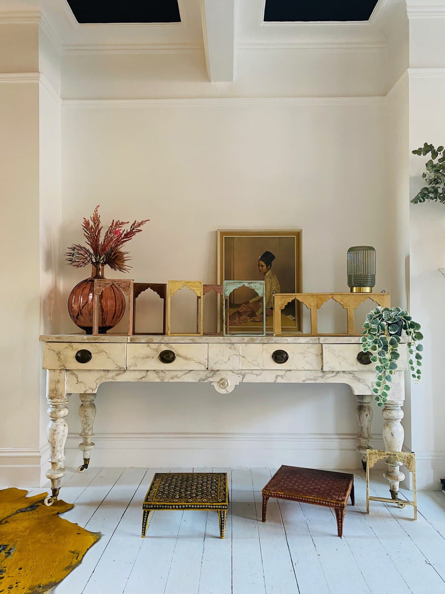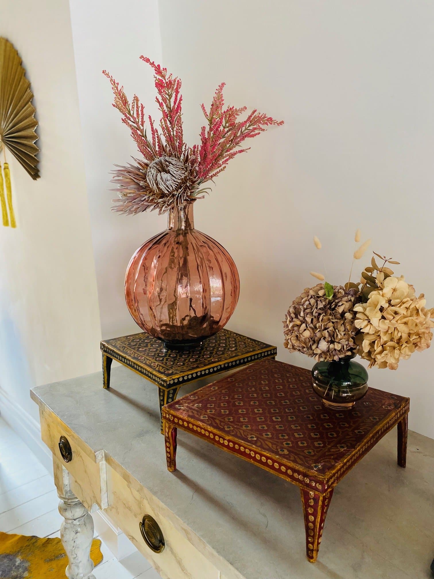 Beautifully hand painted in Jaipur, these low metal tables are great for elevating a plant or vase, to display herbs in the kitchen or would also work well in a child’s bedroom.