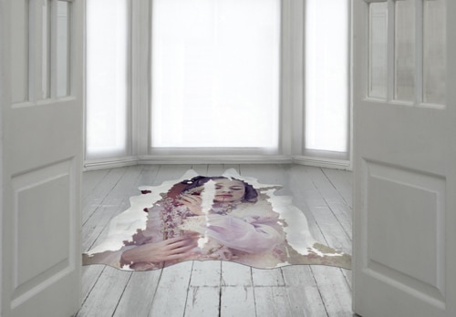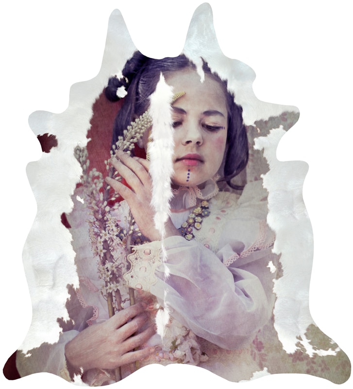 The Renaissance cowhide is unlike any cowhide you have ever seen, it’s from a very exotic breed of beast that lives in the fantasy world of designers Young & Battaglia. The piece features a background image created by artist Himitsuhana, hand cut out in a special rubber backed fabric. A fusion between art and utility, this rug will add a beautifully surreal touch to any interior, and unlike real cowhides this one is hypoallergenic, washable, and will always lay flat. Designed by Young & Battaglia with artwork by Himitsuhana.