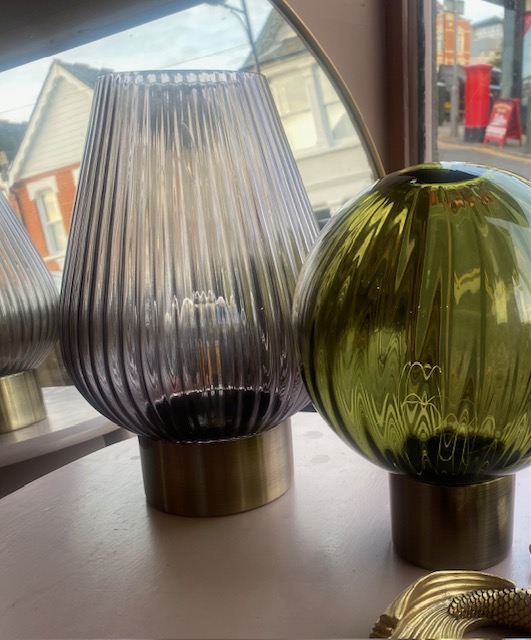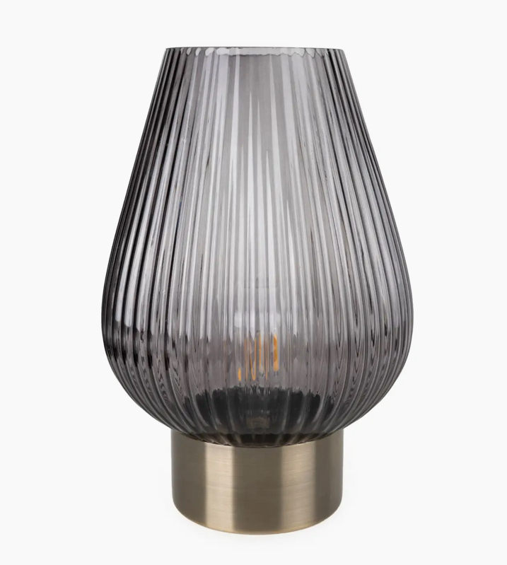 This 33cms LED glass footed ridge lamp in Blue features a stunningly crafted glass cover, with a series of vertical ridges that enhance its visual texture and the quality of light emitted.