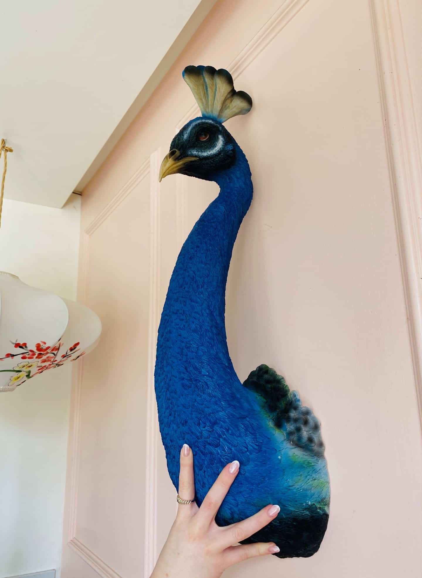This beautiful faux Peacock is sure to turn heads.